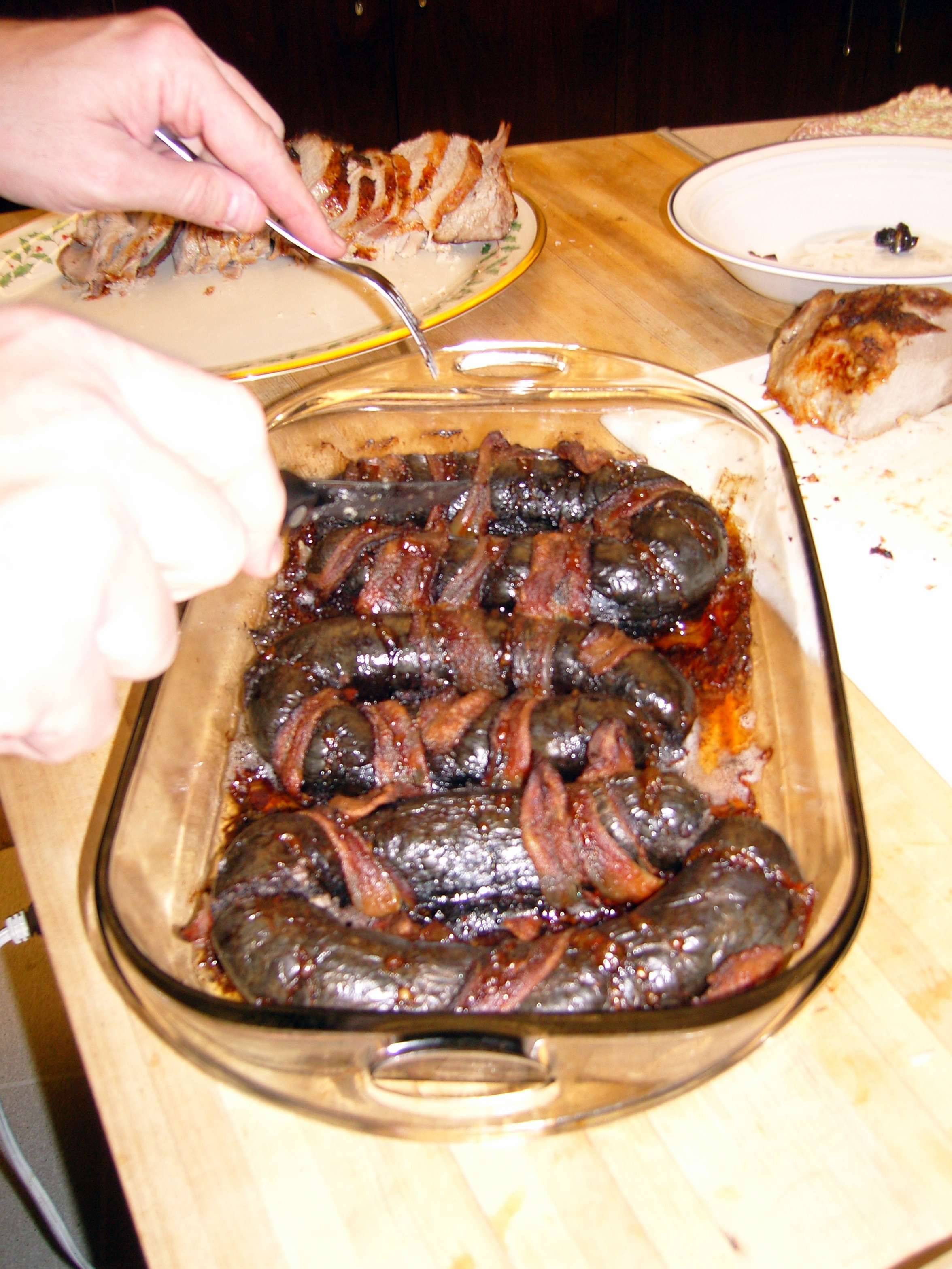 People tend to cringe when I tell them what I eat for Christmas dinner. The Sweigard household generally serves up a fairly ethnic (Estonian and German) Christmas dinner- a meat heavy, tan plate of goodness. Blood sausage, pork loin, pickled beets, sauerkraut, roasted potatoes, homemade rolls and green beans (for color I think) grace our plates every Christmas Eve, right before we go to church and pass out. I guess people get the wrong idea when they hear blood sausage- maybe it sounds kind of, well, gross. But people should keep in mind that it’s wrapped in bacon! And I’ve been eating it every year for Christmas since I was born and no one told me what it was until I was like 15! So lay off already!