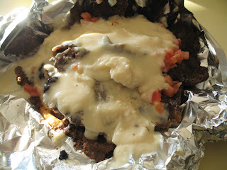3- Place a delicious bacon cheeseburger in between your grilled donut bun.