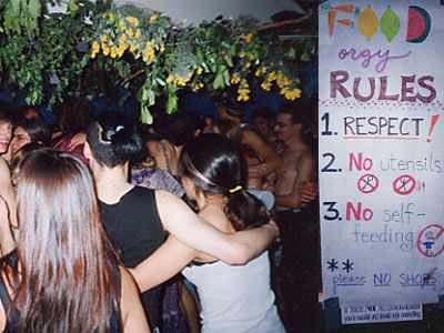 Lest you think drunken munching is limited to meat-eaters, Berkeley’s bacchanalian vegetarians are standing by to prove you wrong. The all-vegetarian Lothlorien House throws an annual festival of food and love so outrageous that it makes Big Ten frat blowouts look like children’s birthday parties. And the tasty treat in question is, um, you…and the girl next to you…and her sister…and her boyfriend…all covered in chocolate.