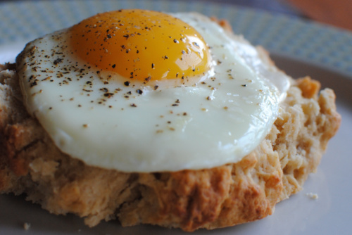 At first glance, I thought that was a piece of fried chicken under the egg. My husband would love a breakfast like that.