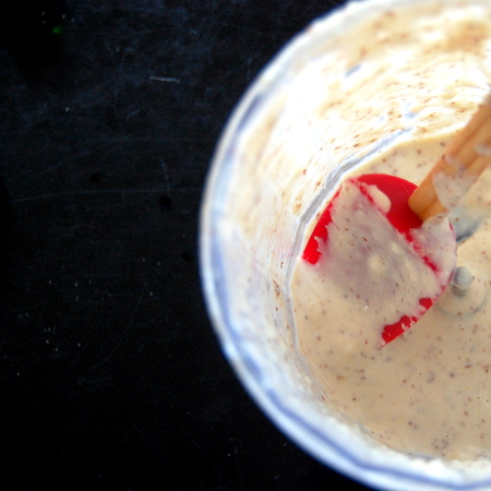 Don’t worry about not mastering the French or Chinese Mother Sauces, you can easily create a creamy and tangy dressing from a few items in your fridge. In an I-need-to-make-dinner-in-30 minutes attempt last night, I buzzed around mustard, tahini, horseradish, hot sauce, manchego, oil, the slightly-cooled pasta cooking water, salt and pepper for a quick sauce on top of Israeli couscous with asparagus, almonds, avocado and green garlic.