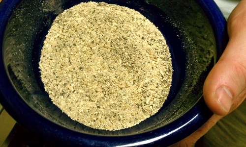 Once we procured the rest of our burger ingredients from Whole Foods, we headed home to make our umami powder. We ran the three components through an old coffee grinder (who actually owns a specialty spice grinder? Not I) and here was the result: