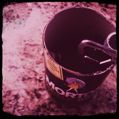 And then I saw this humble, adorable and useful work of DIY. My friend Anna sawed off the top of a Morton’s salt container and filled it with wine supplies. She saves her drawer space for big things, like cooking utensils and graters. She didn’t want her corkscrews to get lost in the back of the pull out and wanted to show off this darling girl in a yellow slicker.