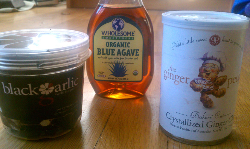 Trendy foodie ingredients. We have…black garlic! This one can’t go bad because the garlic is already fermented, or so I am telling myself. I bought this stuff online from England when it first hit the market a year or so ago. It’s really good in certain pastas and whatnot. I should probably try to use it more often.  In the middle is agave syrup… a pretty hip and I guess “healthy” sweetener, but looks like I haven’t really made much of an effort to actually substitute it for sugar. Finally, we have crystallized ginger chips. The fatal flaw of this one is: I don’t bake hardly ever, nor do I especially like cooking sweet things in general. I think I got these to make ginger cookies a couple Christmases ago. I should probably gift them to our very own BakersRoyale, who could surely do them more justice than I ever could.