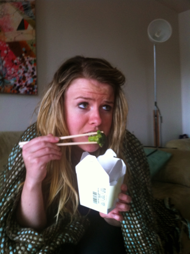 Aw Emily, at least you have someone to hold the camera for you while you drown your sorrows in food. That person really loves you.