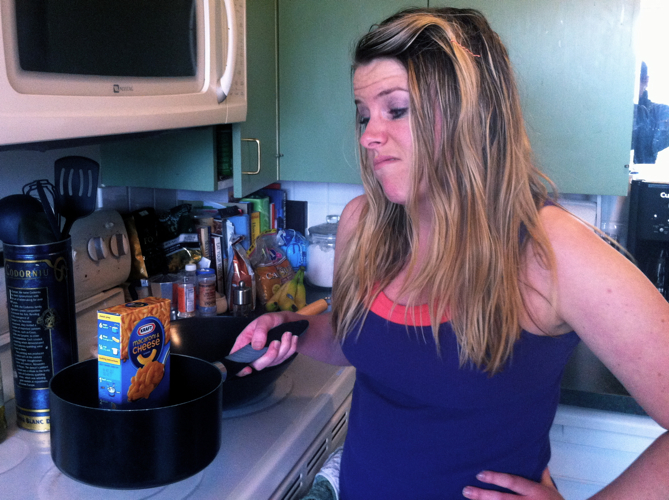 You’re feeling in the mood to force yourself to start doing things again. Things besides crying, watching TV, drinking, and scavenging for leftovers that haven’t grown mold in your sorely understocked fridge. Well, time to cook! But: baby steps. No use in breaking down in tears over a fallen soufflé, which is surely a metaphor for the crumbling of your once-perfect relationship. You decide to start out easy with the ol’ Kraft. If you have water, milk, butter, and a dollar, you can have yourself a good mac & cheese dinner for one. (I’ve always thought it was so depressing how they call a box of pasta and powdered cheese “dinner,” you know?)