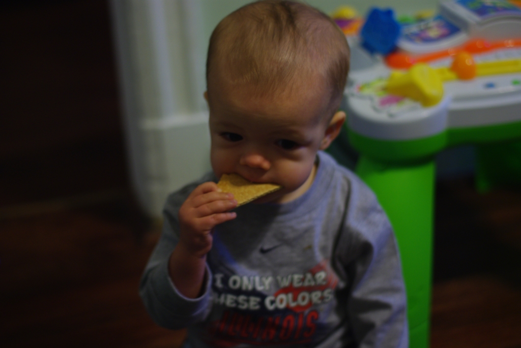 My husband once referred to these as toddler crack, based on my son’s extreme agitation when confronted with them. Unless they are on the outside of a marshmallow and some chocolate, I see no reason why I would want to eat these sawdust flavored pieces of cardboard. The best part is that my son refers to them as “cookies.” Boy, is his mind going to be blown the day I let him have an Oreo.
