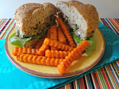 I served my turkey burger with sweet potato crinkle fries and a side of veggies (not pictured). Delicious and nutritious, ya’ll!