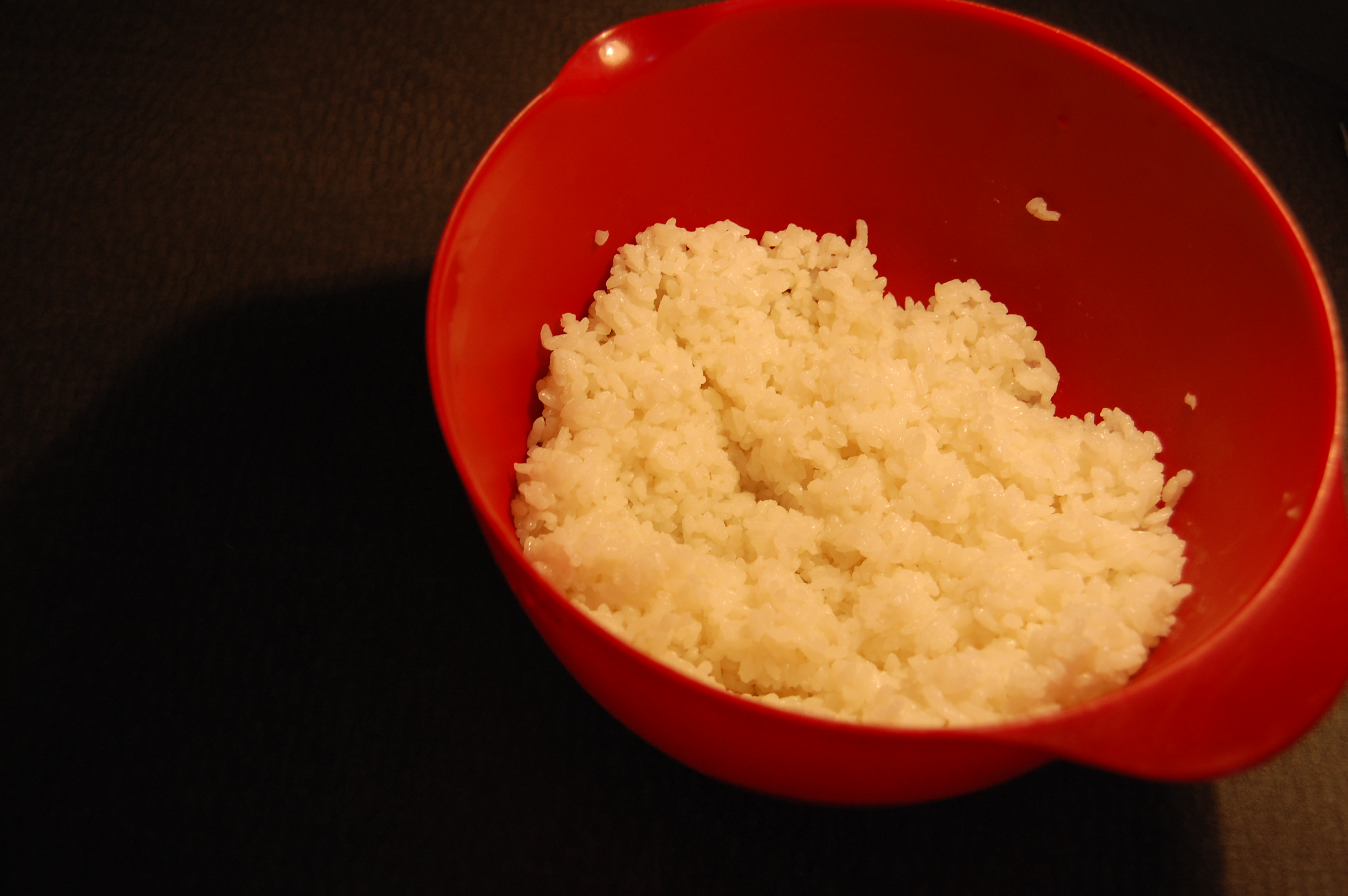 Next, start the sushi rice (follow the instructions on the container).- I use 1 cup rice, 1 1/4 cup water, cover, bring to boil, reduce heat to low, cook for 20 min. Remove from heat, let stand for 10 min.