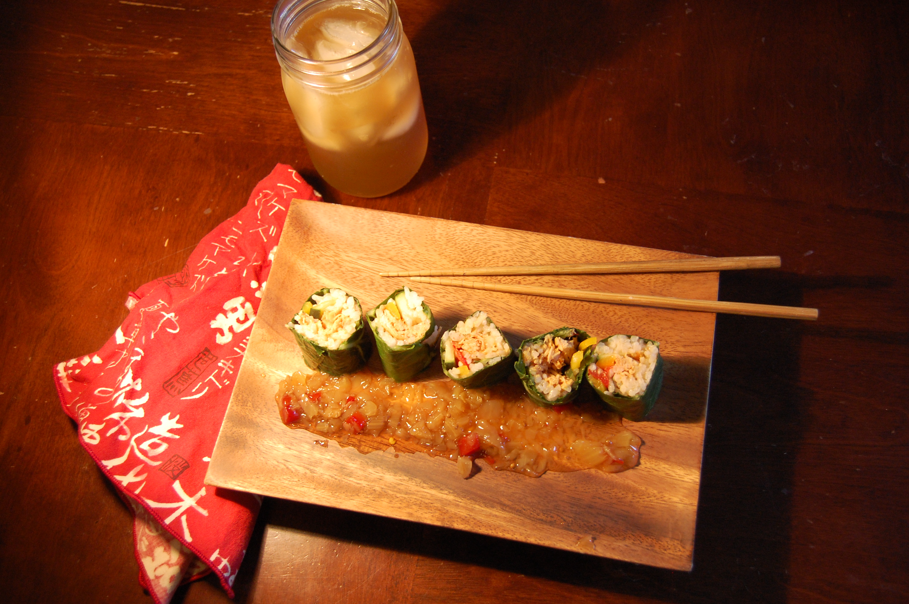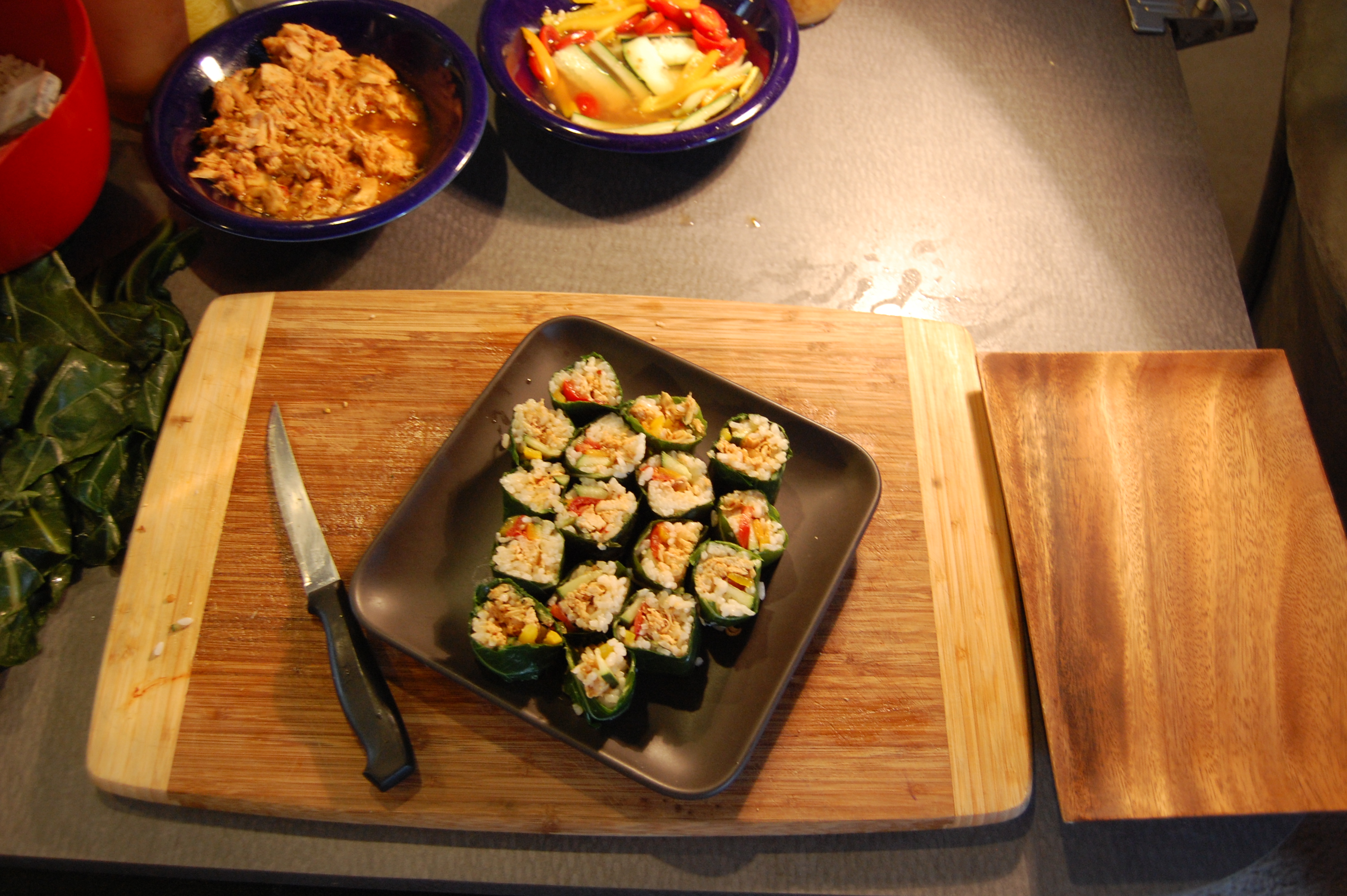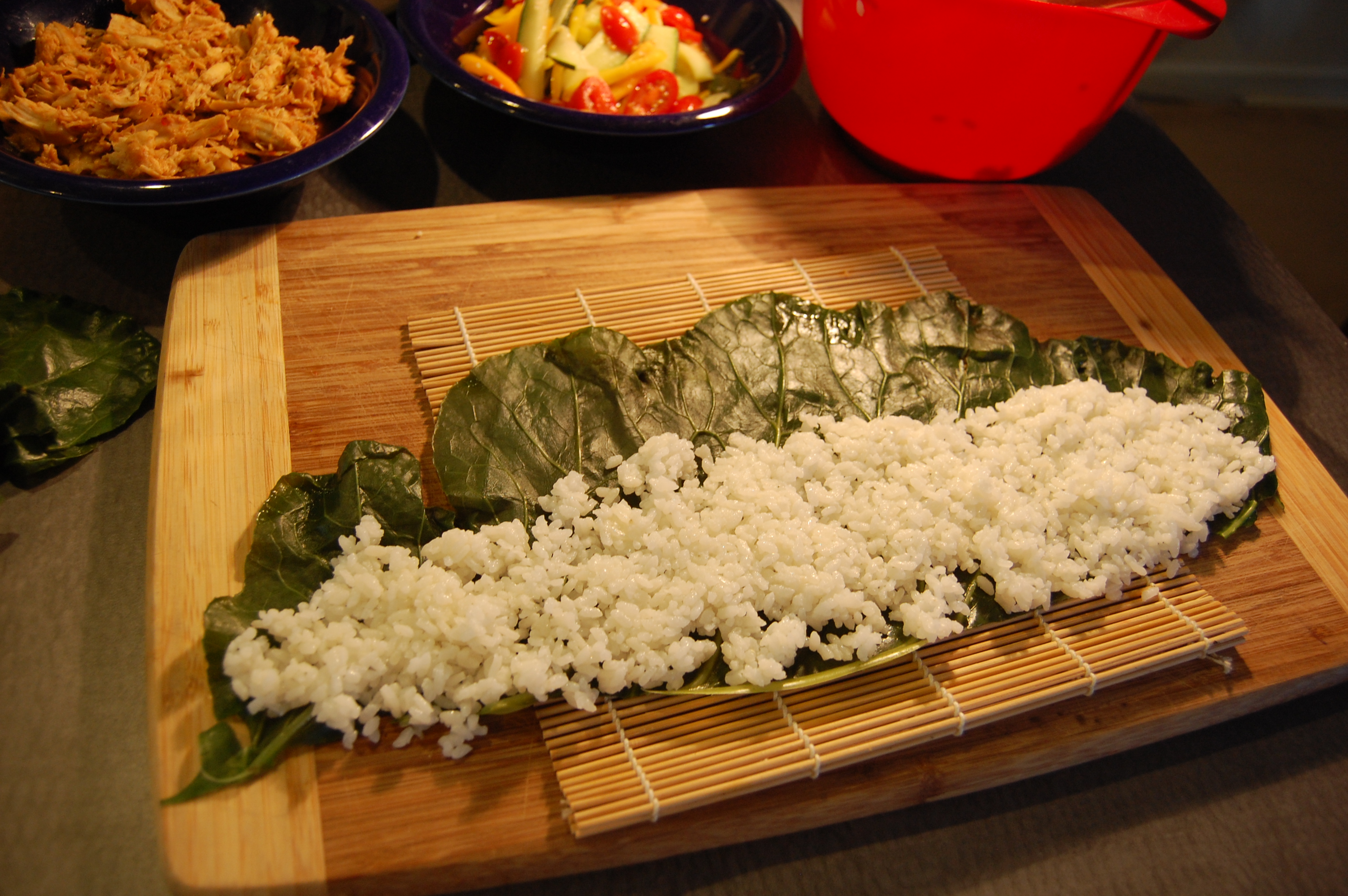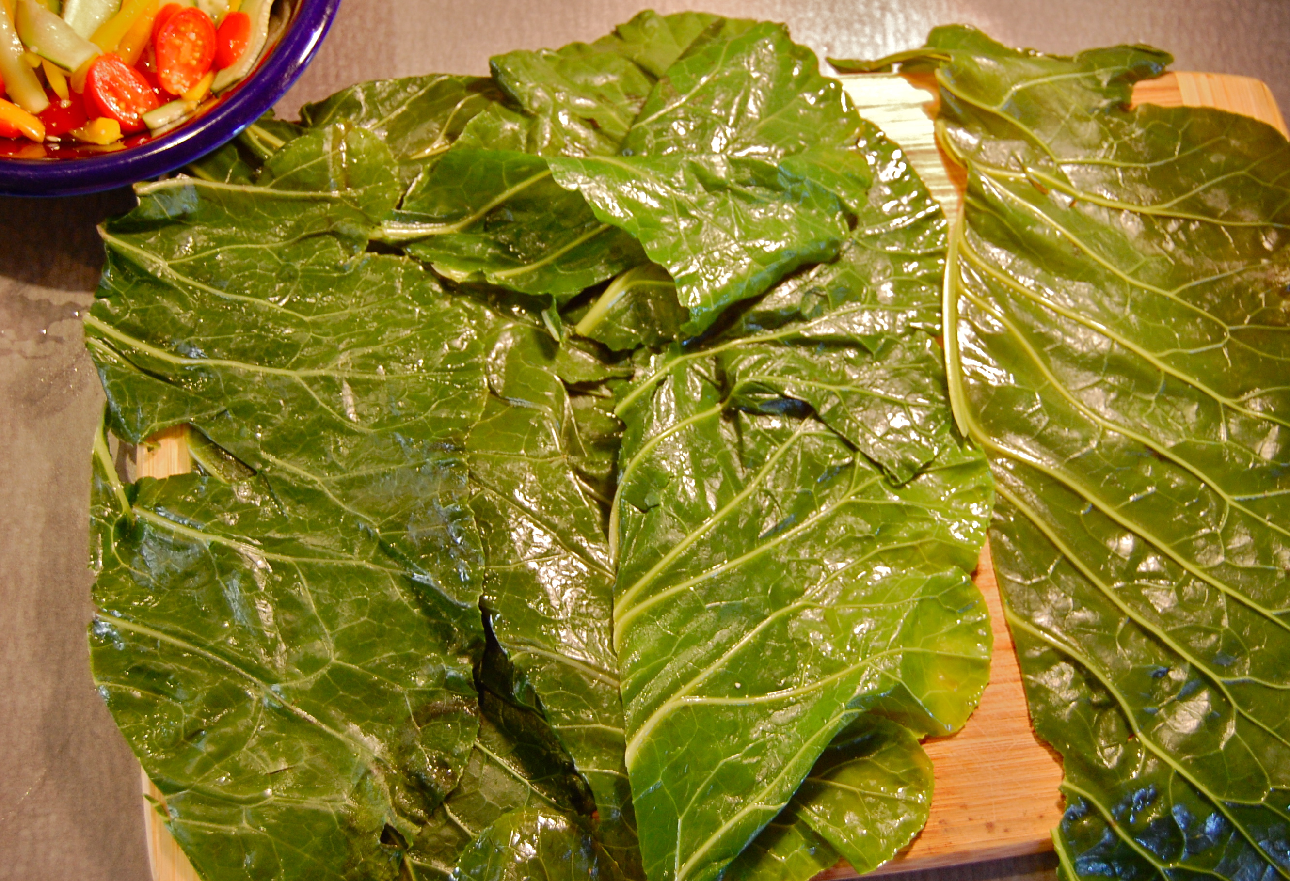 Collard leaves behaving like nori? I was pleasantly surprised!
