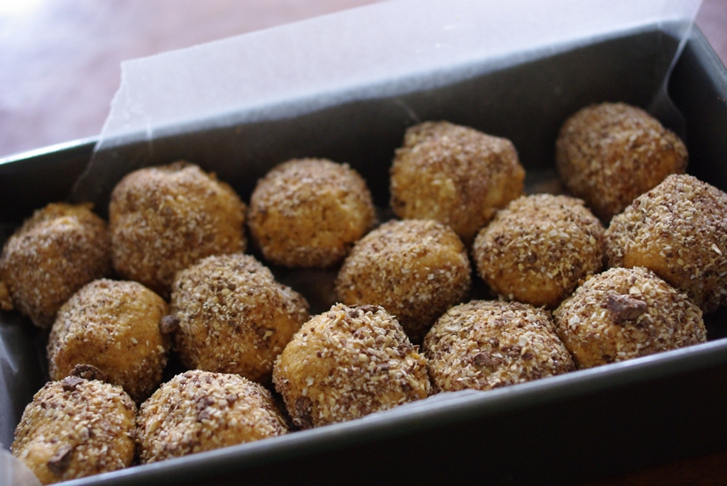 If desired, roll balls in a combination of equal parts cocoa powder, oat bran and granulated sugar.