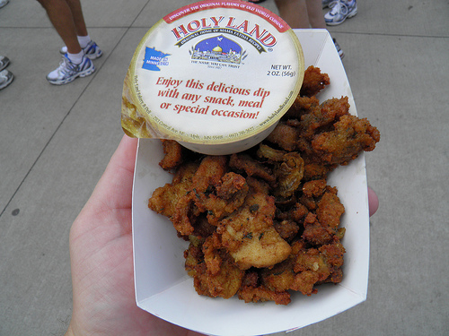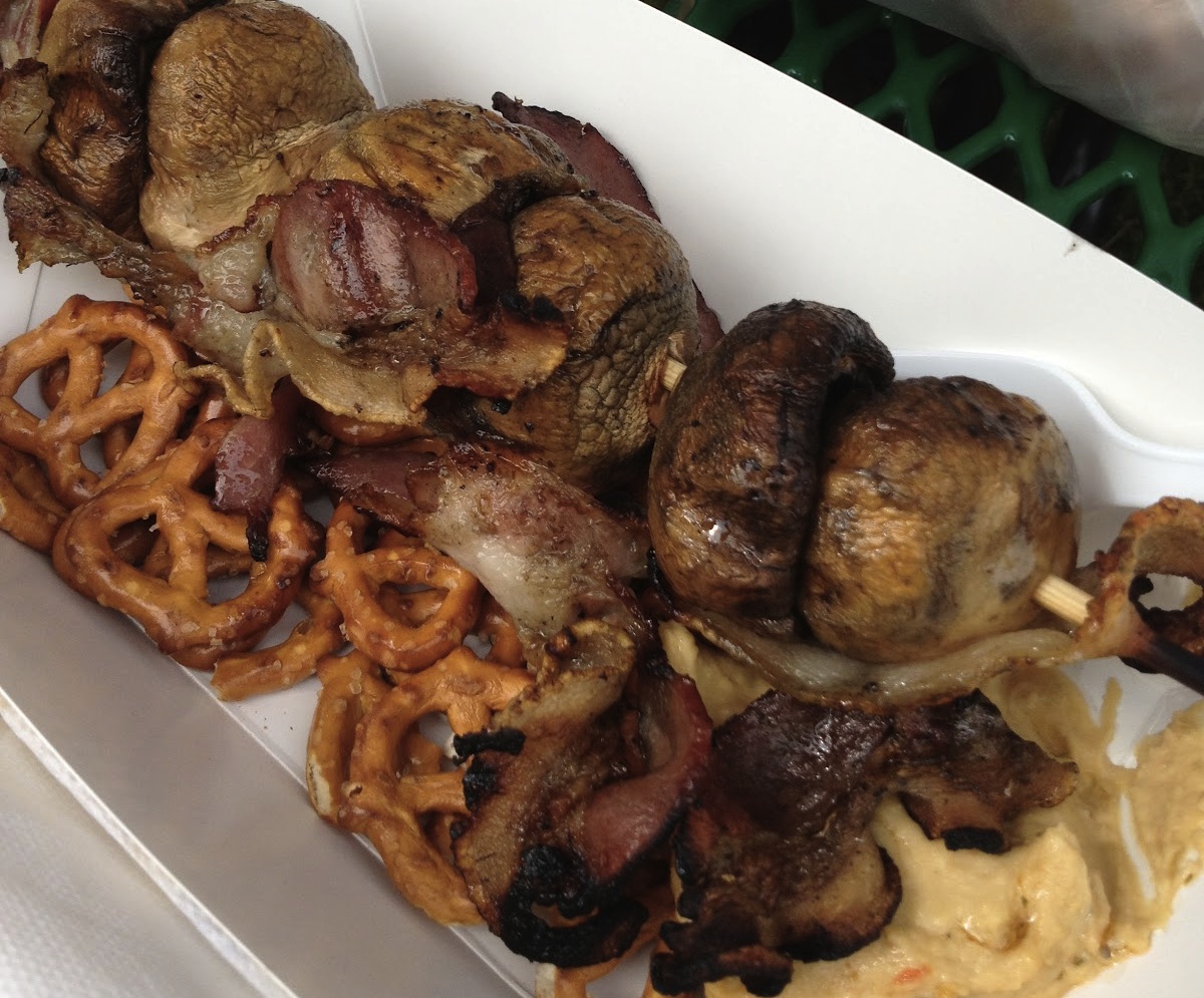 Mushrooms? Blech, they’re healthy! They don’t belong at the fair! In the most cleverly named item on our list, the Oklahoma State Fair solved mushrooms’ healthiness problem by stuffing them with gouda cheese, wrapping them in bacon and serving them on top of a pile of pretzels. Yup, that’s the Porkabella. (Photo: Nightshade’s Red Eagle Blog)