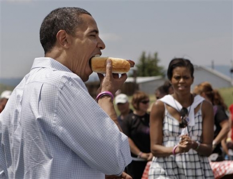 Obama is totally going python mode on that hotdog. That earns my vote.