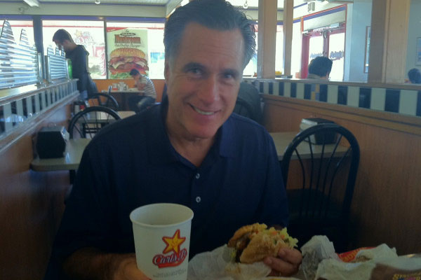 Some people whine that our POTUS shouldn’t imbibe, but whatever. For one thing, he’s at a basketball game. It’s basically mandated that you drink at sporting events. For another thing, drinking is cool and we all know it. Bottoms up, Obama. On the other hand, Romney drinks a MYSTERY BEVERAGE at Carl’s Jr. It’s a mystery because he’s a Mormon who doesn’t drink soda, coffee, or sweet, sweet alcohol. Everyone has freedom of religion and that is a wonderful thing, but at the same time, a fountain soda cup full of non-fountain soda is just kinda sad. That cup is probably full of… water? Decaf iced tea? Just plain chunks of ice? The world will never know. Womp womp.