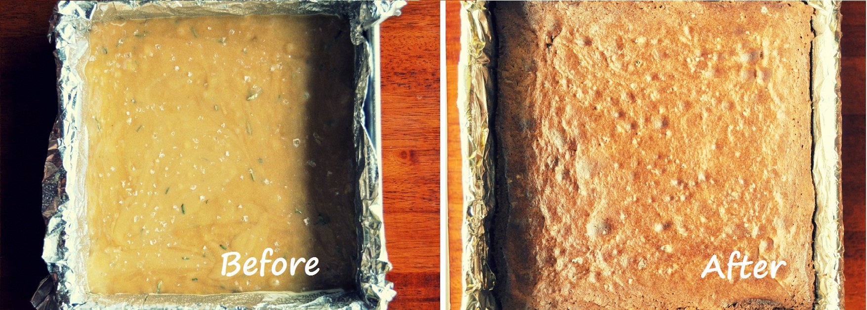- Scrape into the prepared pan and spread evenly. Sprinkle the scant teaspoon of flaked sea salt over the top of the batter.