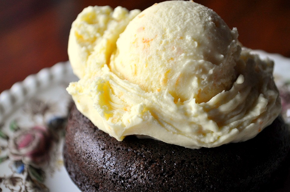 Dark Chocolate Doughnuts topped with Orange-Cardamom Ice Cream (Gluten-free)