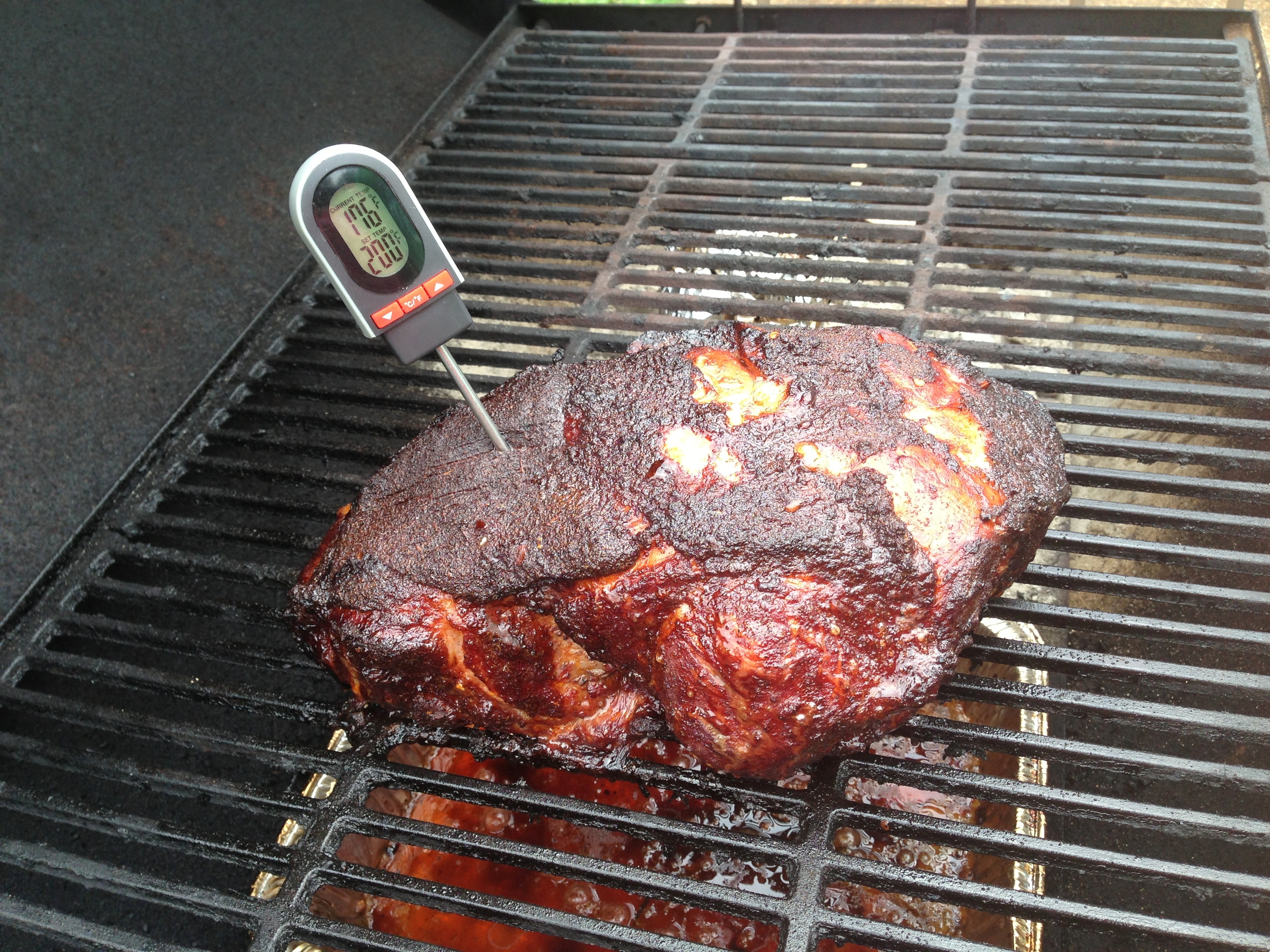 A mop sauce adds additional moisture to your pork as it cooks. So you have a double whammy, the internal moisture from the injection plus the mop sauce basting the outside of the meat. Can’t go wrong with that!