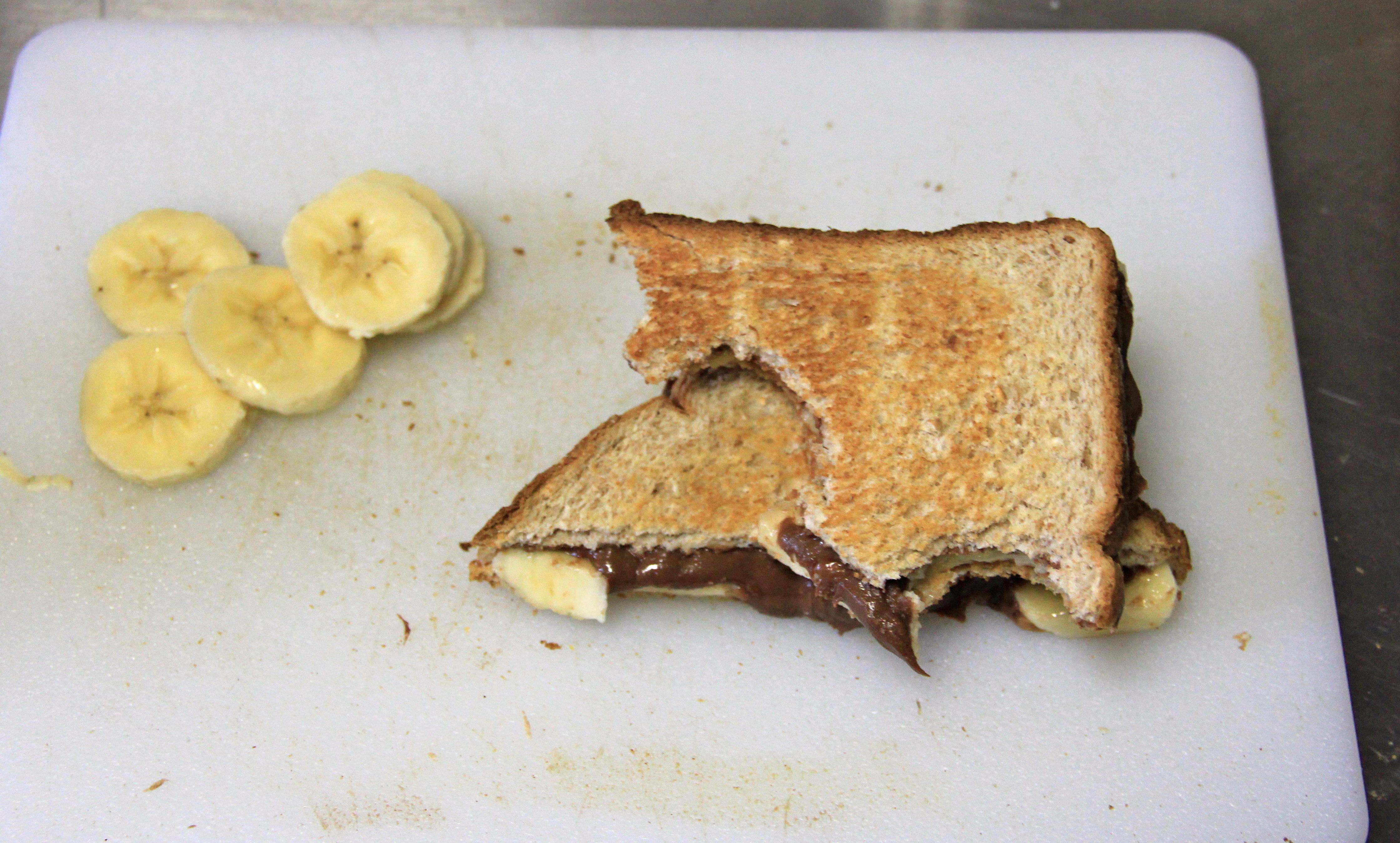 I have to say I aced this sandwich — toasting the wheat bread perfectly, cutting just the right size banana wedges, and pressing it all together while the bread was still warm enough to create that ooey, gooey amazingness.