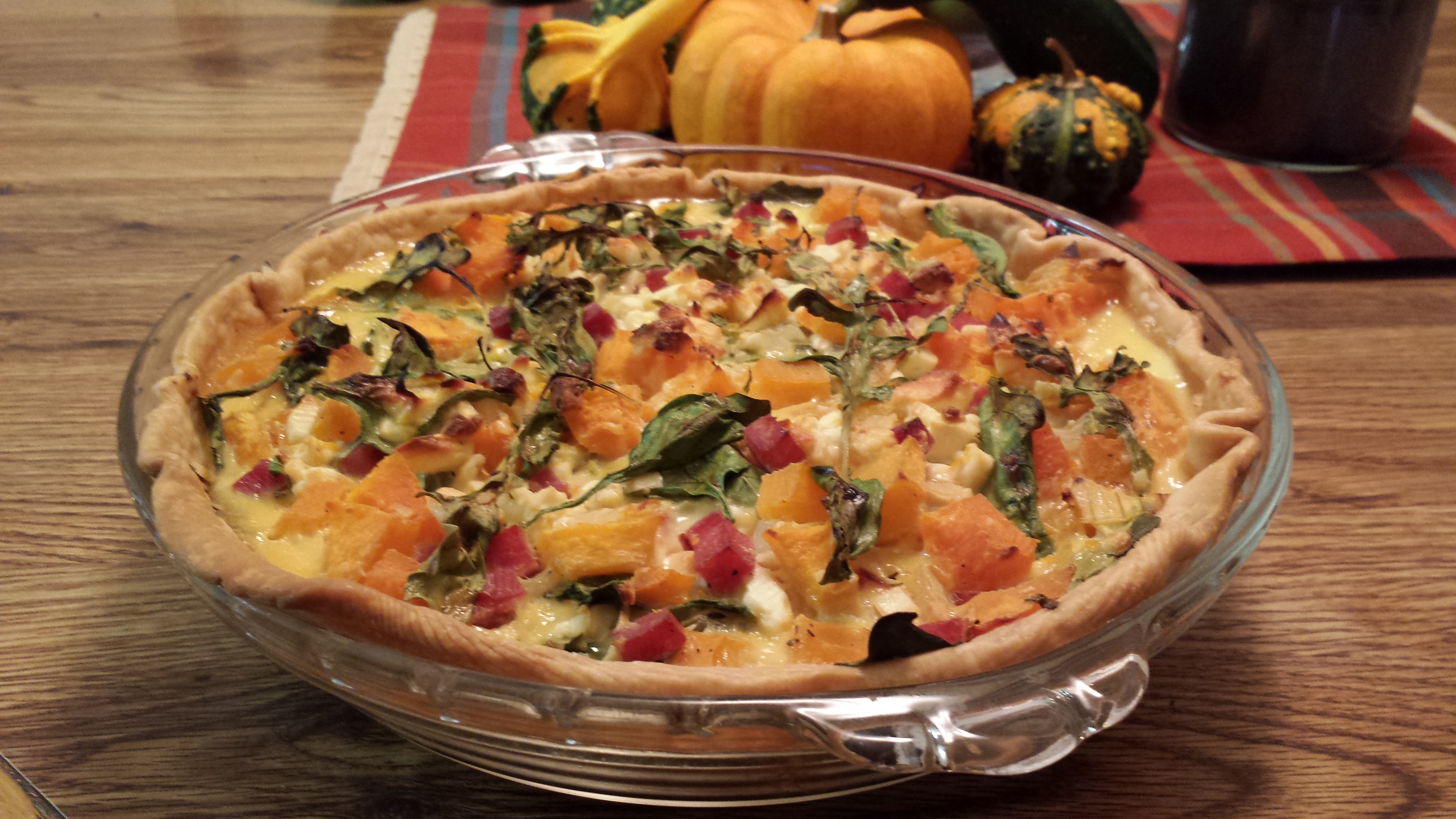 YES. One of the many reasons I love fall—butternut squash. For so long I’ve only known it to help create delectable, creamy soups that warm my stomach and my ginormous heart. BUT wait! Remember how my woman makes amazing quiche? Well, she’s been at it again. We both love the squash and decided to take a leap of faith and mix it with another one of our favorite things: savory pie. I thought I knew what my favorite quiche was, but this new variety has me pretty torn.