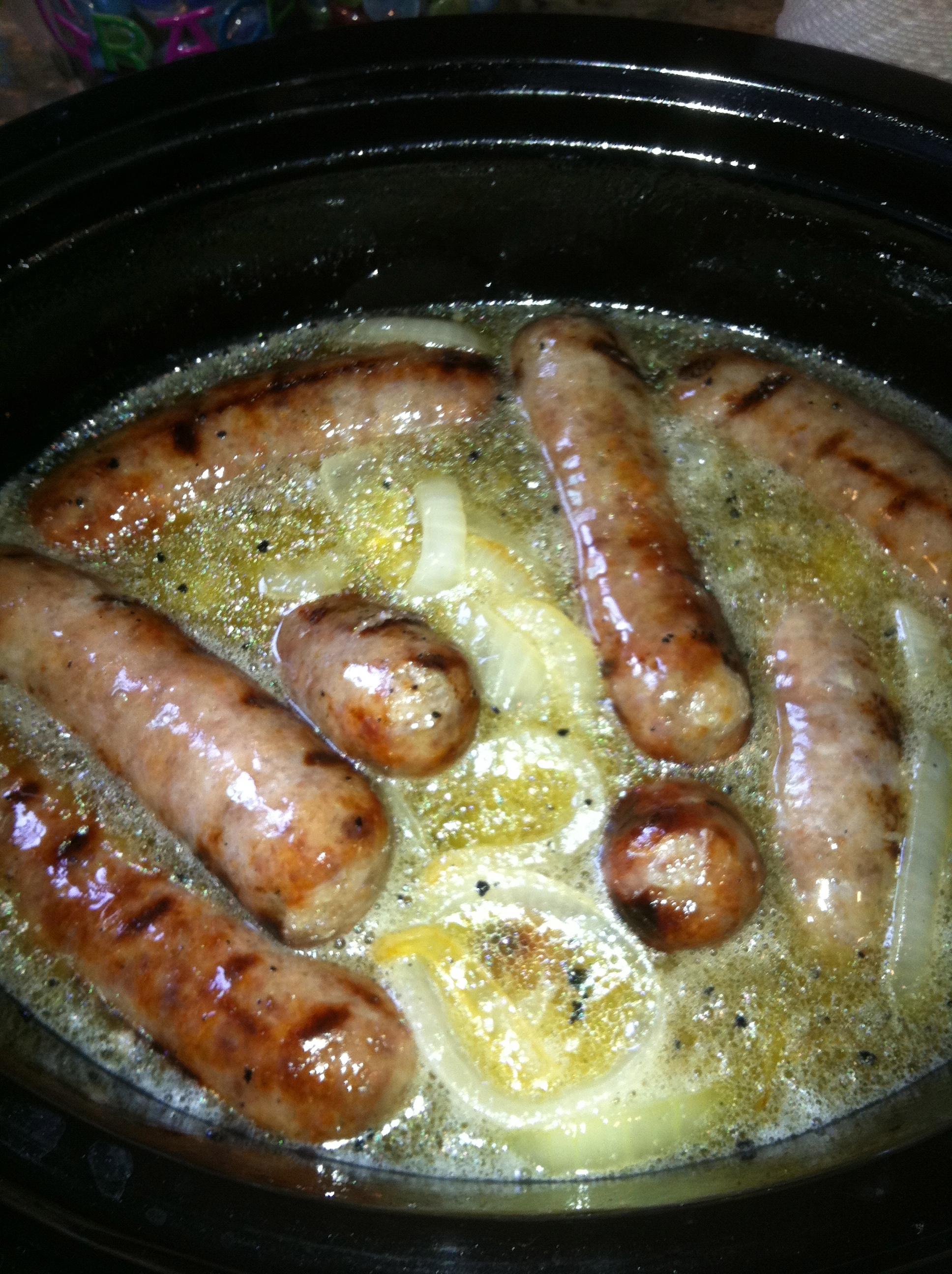 This is another one that I think just makes a lengthy meal easier. I would sear the brats first, THEN throw them in the beer-blessed slow cooker. Who expects to have brats at a Super Bowl party? Well…now I do.