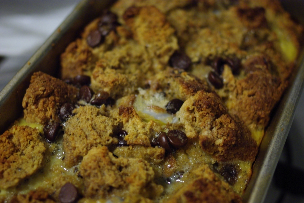 The Joy of Cooking told me that for bread pudding, you should only use yeast breads, not ones leavened with baking soda, so I went online in search of a different recipe for bread pudding to redeem my sad banana bread. Just a heads up, it is pretty much exactly the same as the recipe in the Joy of Cooking. Oh, J of C, why you gotta lie like that?