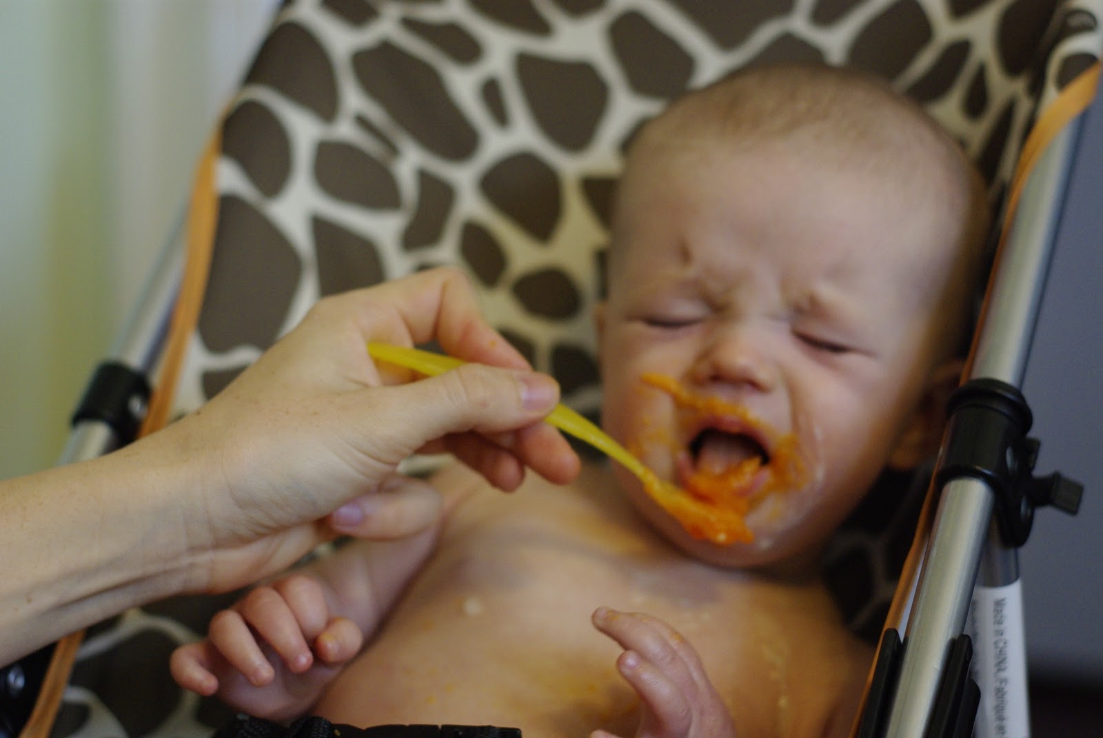All the texture of rice cereal, plus the power to stain any and all surfaces they touch — liquified veggies are truly abhorrent. Since we waited until Elijah was six months old to give him solid foods, the mushy green paste period was mercifully short. We never tried the jarred meat, so I can only imagine the horror. And the smell.
