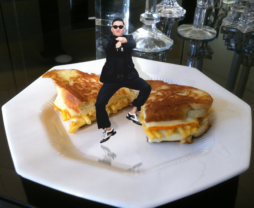 I don’t want to rush ahead, but as you know, November 3rd is National Sandwich day. So I was thinking about my favorite ‘Gangnam Style’ meal to celebrate this festive occasion. Gangnam Style is defined as “Dressing classy, but acting cheesy,” and what better sandwich represents this than my grilled lobster mac ‘n’ cheese?