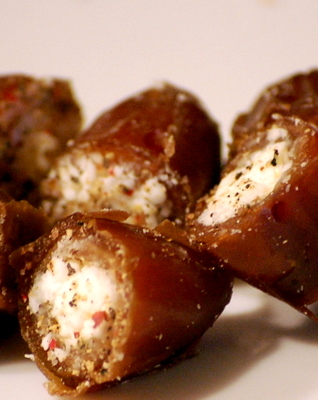 One of my all-time, go-to apps is blue cheese stuffed dates wrapped in prosciutto, or as date eaters in the know call them, Devils on Horseback. They’re really simple to prepare and cook in a matter of minutes, plus their sticky-sweet-chewy-saltiness makes them sooo addictive.