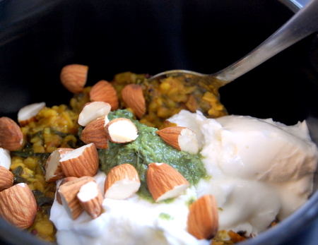 This story has happy ending, though. In the following weeks, I looked for any opportunity to make my new favorite dish for others. Fortunately, not all my friends feel as negatively toward cauliflower as that BFF who shares my bed. My vegan friend Katie appreciated the animal-free heartiness. My friend Kate (yes, all my friends really have the same name) declared it delicious, spicy but not too spicy, after warning me that she probably wouldn’t like it because she doesn’t like a lot of things. It’s my new go-to for any night my darling cauliflower-hater has to work late or is otherwise indisposed at the dinner hour, and I don’t have to feel guilty for making his favorite on a night he’s not home.