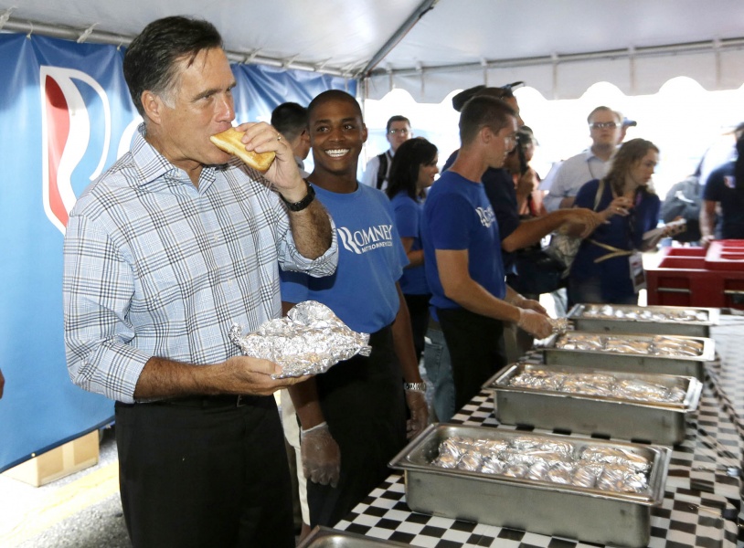 Well, it’s reassuring to know that both of our options aren’t afraid to grub down on some bird. Romney seems a bit… uh… glazed over during the whole thing, while Obama aggressively tears into his wing. What does this mean? It probably means nothing. Both of these political bros are just chowing down on some chicken, and while Romney looks perilously close to the mortal sin of sticking his fork into that drumstick, he doesn’t actually do it.
