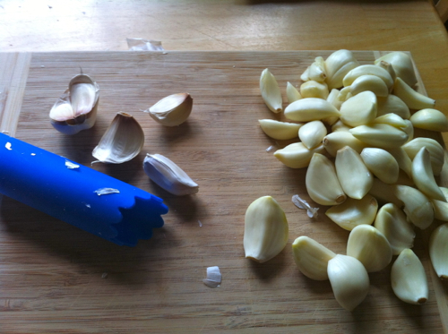 Well, now it’s time to go Rumplestiltskin-mode on this garlic. Instead of spinning straw into gold, you’ve gotta turn about 40 whole cloves into a nice, peeled, minced pile. It seems daunting, but you can get through it.