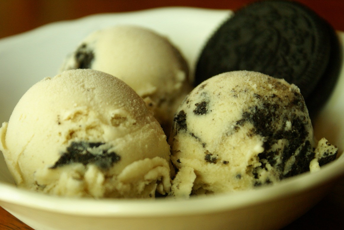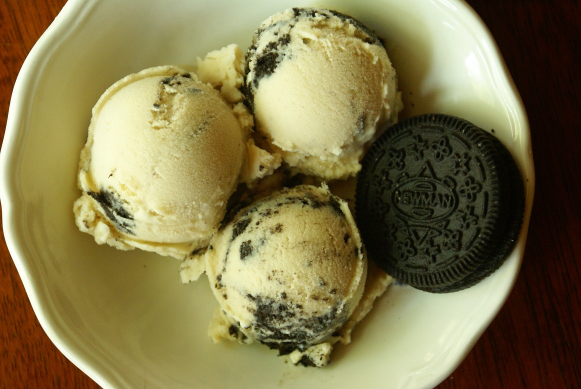 - Churn according to your ice cream maker’s instructions. Add the chopped cookies during the last two minutes of churning. Freeze in a shallow container, covered with plastic wrap and an airtight lid, for up to a week.