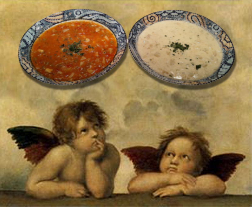 AK: Along with everything else, your taste buds have gone to hell! If I substituted pasta for potatoes in your bowl, I’d be making linguine with clams—which would be a huge improvement over a dish that looks more like salsa than chowder. The white, creamy richness of MY chowder is reassuring and comforting. It is the one ‘true’ chowder between the two, and I reject your false chowder! There is only one path to the kingdom of chowders, and that path leads straight up to New England, not down to Manhattan. Oh, when will you see the light?