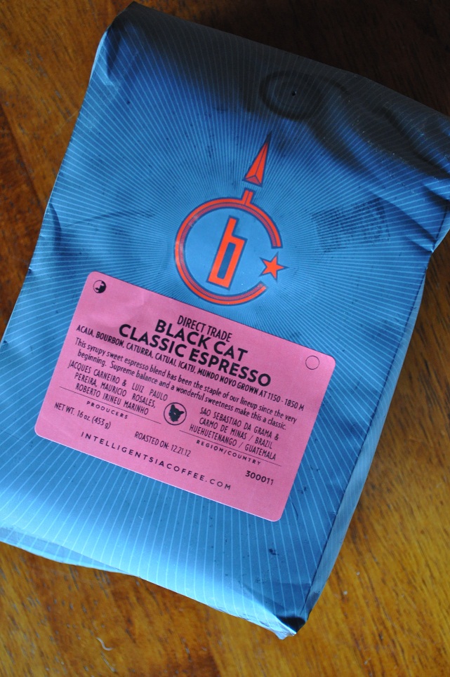 I recently picked up a bag of this Black Cat Espresso (one of the offerings of Intelligentsia’s Black Cat Project). This is not your over-roasted-to-mimic-flavor Starbucks espresso. The beans are a fairly light Latin American blend, with hints of caramel, brown sugar, chocolate and cherry. With a splash of milk, it’s a perfect mid-afternoon pick-me-up.