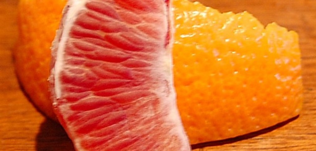 Wow, very off topic. So, as we’re leaving E-market with bags full of cheese, fish, bacon… I realize I haven’t purchased any fruit. And beyond that, I haven’t eaten a piece of fruit in like two weeks. But mostly, I can’t be out-done by BS’ kumquats, so I decided I needed to try something new as well. I therefore buy my first blood orange.