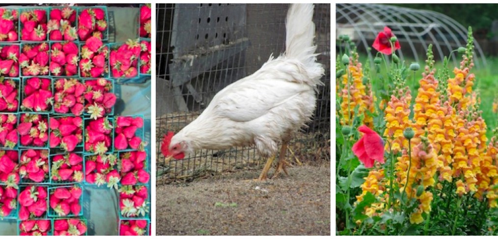 Next stop was Boggy Creek Farm—the vision of Larry Butler and Carol Ann Sayle, who have been growing commercially since 1991. They are USDA-certified organic, which doesn’t come easy. Carol, with a wide toothy grin and sunspots from long days in the field, reminded me of a modern-day Aunt Eller, proclaiming, “We’re all about the soil, but we don’t know everything!” She enthusiastically bantered about the challenges of the small farmer as I wandered the grounds, stumbling across fresh strawberries, spring onions and some plucky chickens who found their way under my feet.