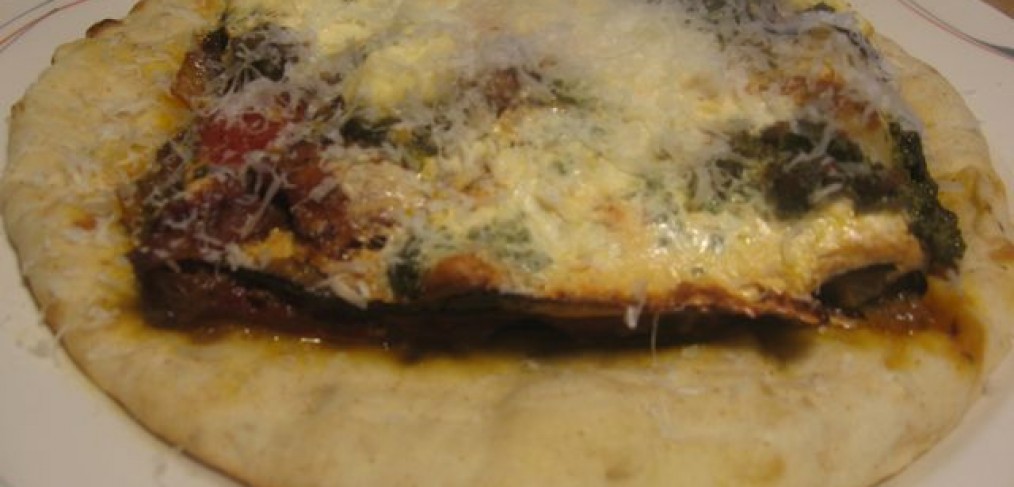 I recently realized that because I’m always trying to do something new, I never even think to make everyone else’s great recipes that appear on this site, which really was the whole point of this thing in the first place. So when I had a half-empty fridge and no original ideas goin on recently, I decided I should try out one of gansie’s more delicious looking creations, Eggplant and Chickpea Lasagna.