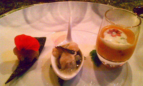 These are all pictures taken in semi-stealth, meaning no flash or rearranging of plates/glasses at our communal table. I didn’t want to be the asshole with the repeatedly disruptive camera in this elegant atmosphere, blinding all the sophisticated diners who threw down hundreds of dollars for this meal. But I had to have something to show you!
